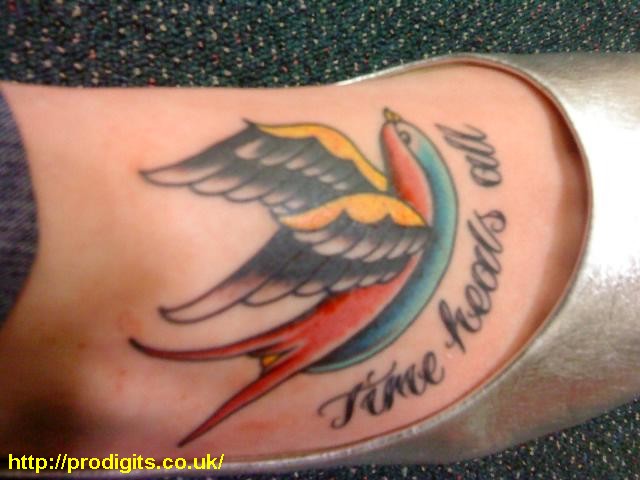 One swallow means 'safe journey home'. Script reads 'Time Heals All'. R.I.P, Dad. I miss you. x x< Prev|Next >Download